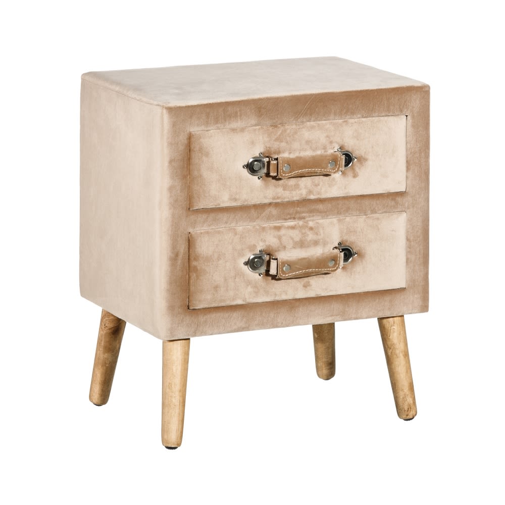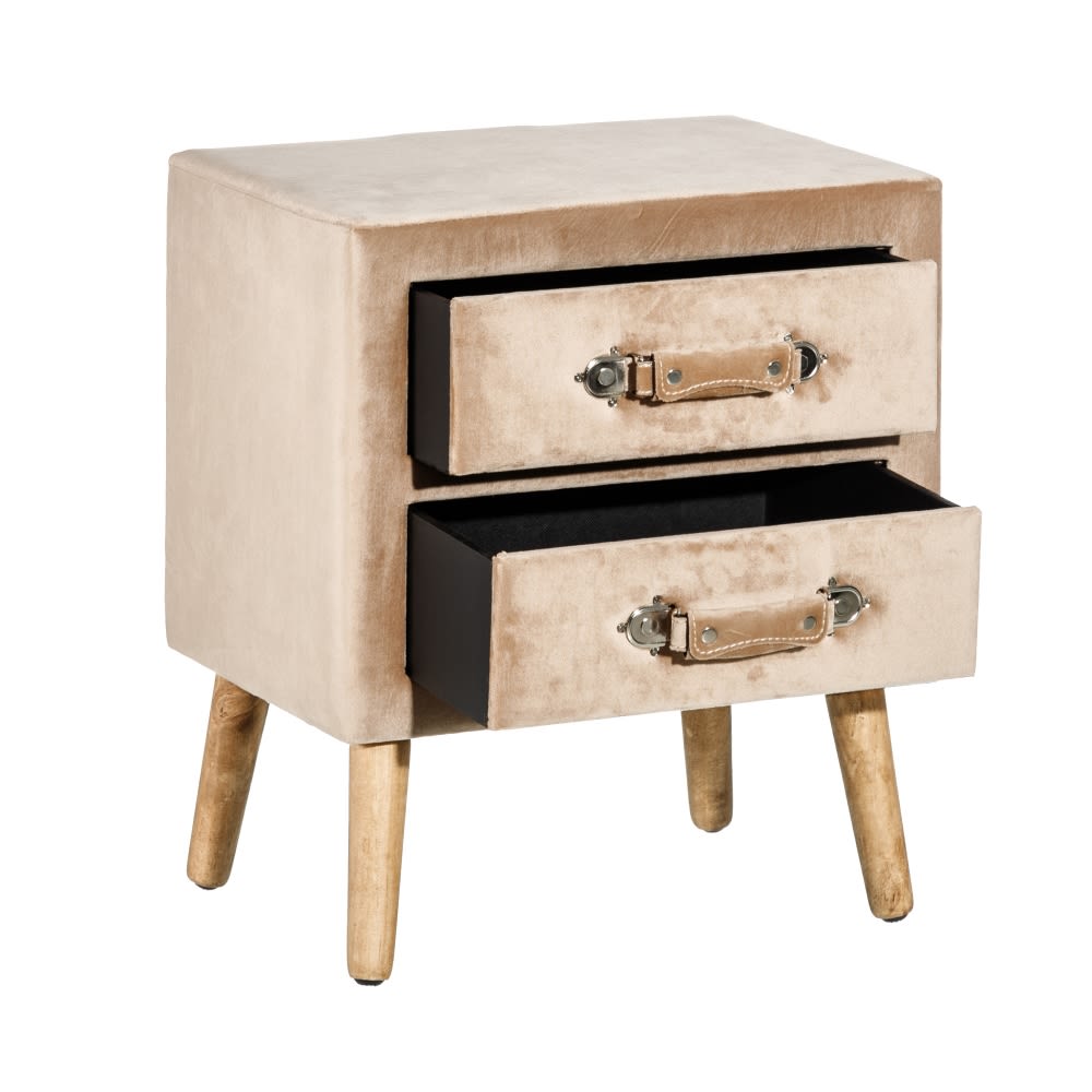 MESITA BEIGE MADERA / TEJIDO DECORACIÓN 46 X 34 X 53 CM