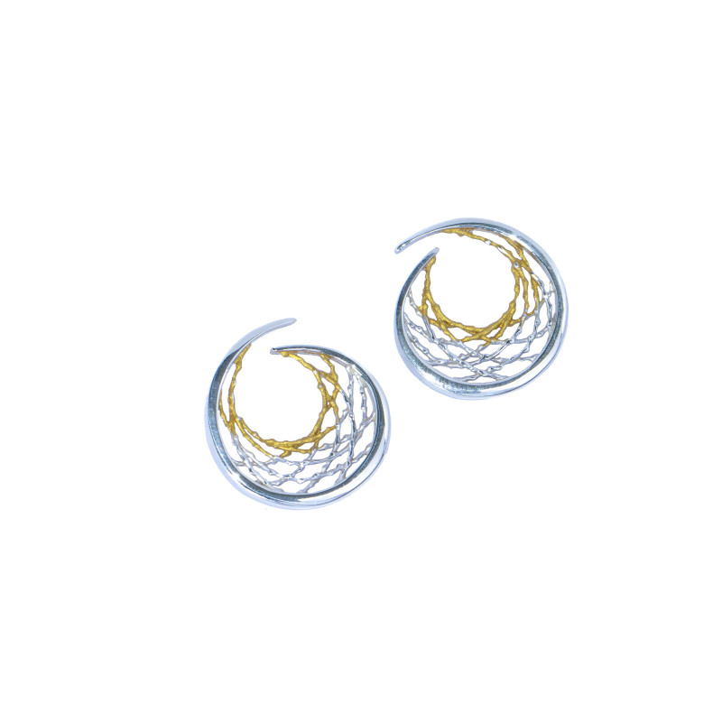 Pendientes gancho en plata de ley 925, disponible en acabados plata brillo, plata con baño oro y en plata óxido con pigmentos naturales en varias tonalidades.Compuesto por pieza circular recordando un campo de semillas en su interior de 2,4 cm x 2,3 cm disponible en acabados plata brillo, plata con baño oro y en plata óxido con pigmentos naturales en varias tonalidades con gancho en forma circular en plata 925.