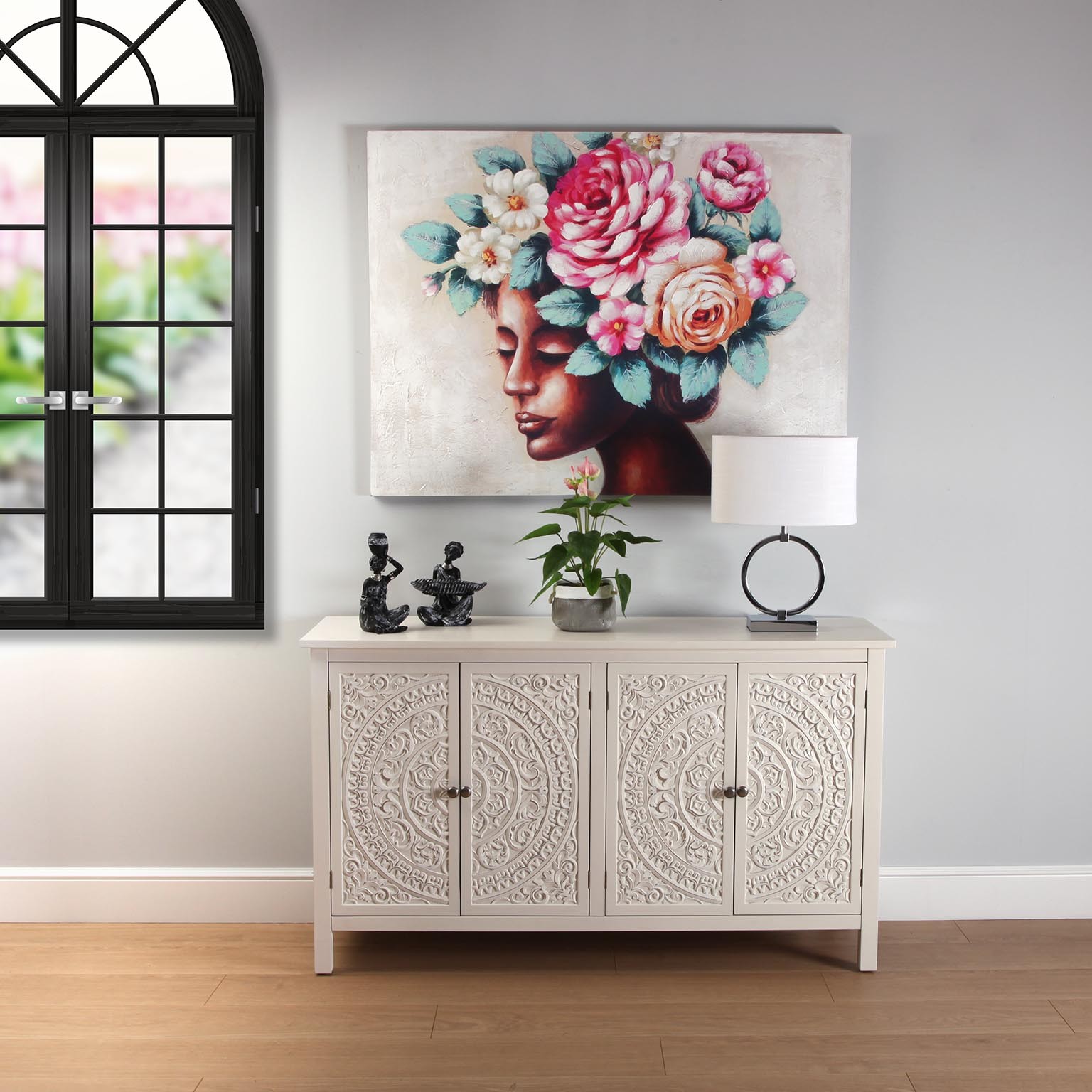 APARADOR MADERA BLANCA ORIENTAL MANDALA