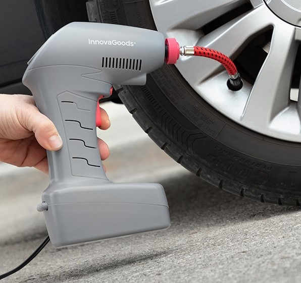 Por su diseño portátil y compacto, resulta de gran utilidad para medir la presión del aire de los neumáticos y otros objetos y aumentarla fácilmente en casos de emergencia