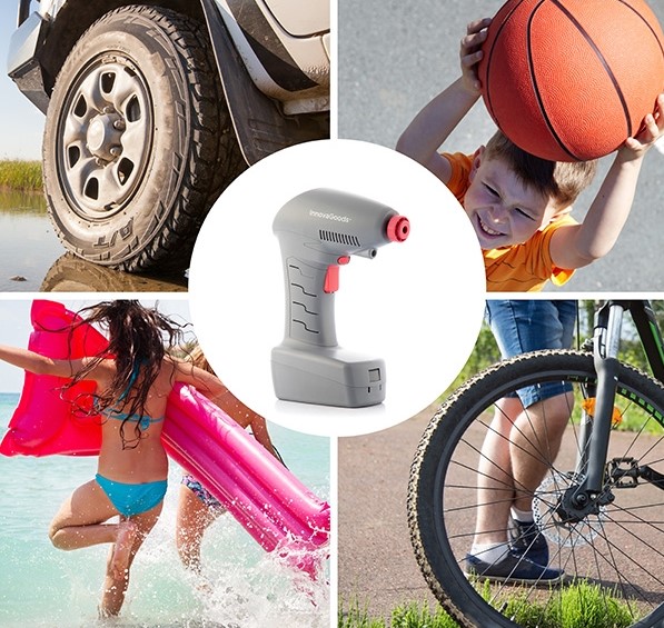 • Ideal para neumáticos de vehículos (coche, furgoneta, autocaravana, bicicleta, moto, etc.) y para objetos hinchables (balones, flotadores, etc.)