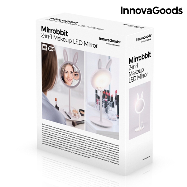 ¡El original e innovador espejo-lámpara LED para maquillarse 2 en 1 Mirrobbit! Muy práctico por su doble uso, ya que puedes utilizarlo como espejo para maquillarte y como lámpara LED de mesa. Además, no necesita pilas, ya que es recargable. Ideal para regalar y excelente para integrar en la decoración de tu baño o dormitorio.