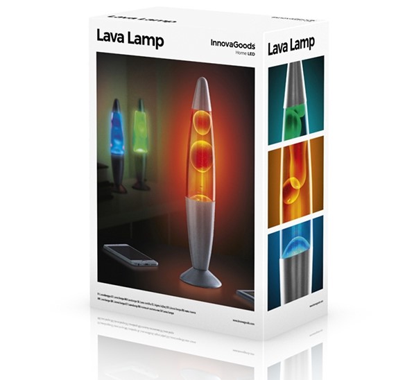 Una lámpara de mesa que crea un ambiente muy especial al fluir en su interior una apacible corriente de lava. Perfecta para la mesilla de noche o para cualquier espacio de la casa.