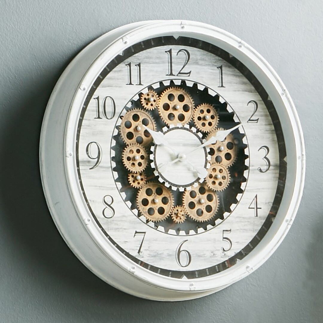 RELOJ CON ENGRANAJES EN MOVIMIENTO COLOR BLANCO